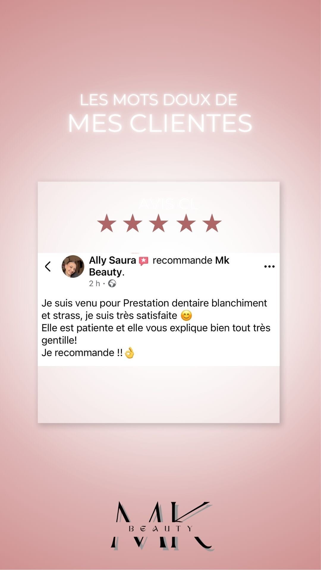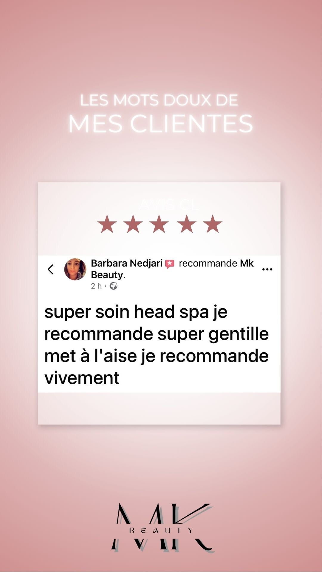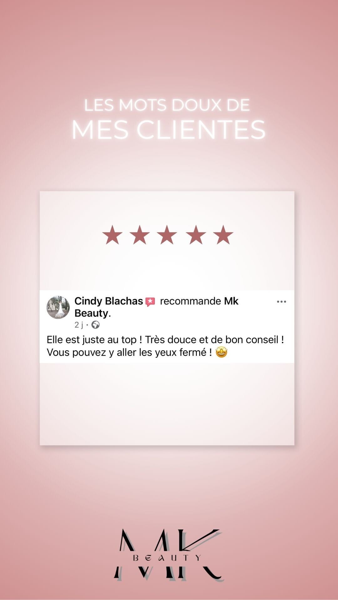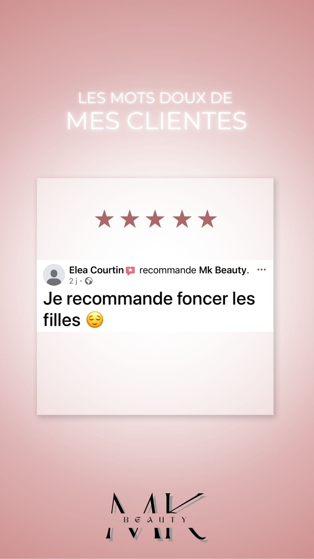 Merci à toutes mes clientes pour leur confiance et leurs sourires qui m’inspirent chaque jour. Chez MK Beauty, vous n’êtes pas seulement reçue pour une prestation, mais accueillie comme une invitée privilégiée.